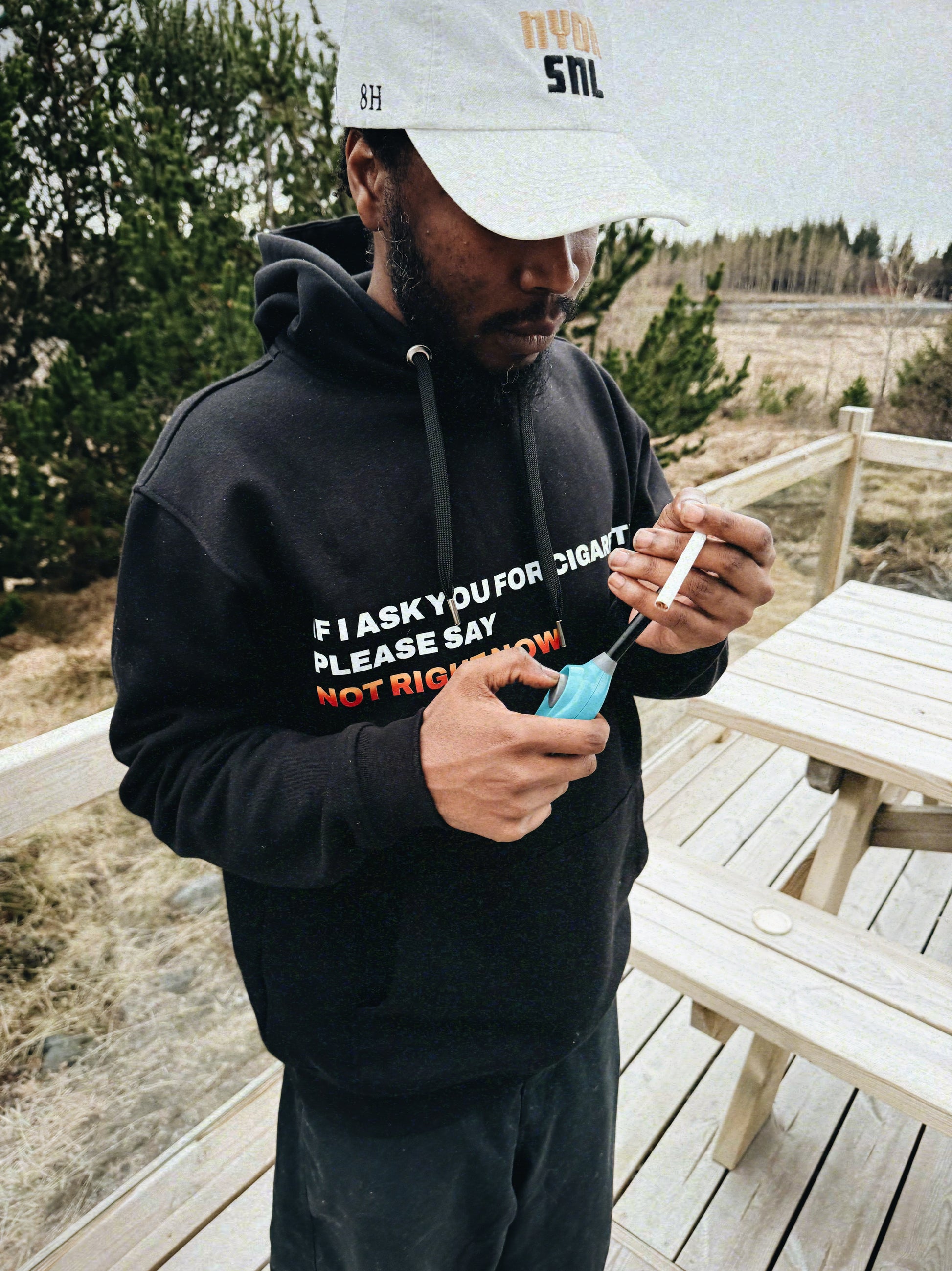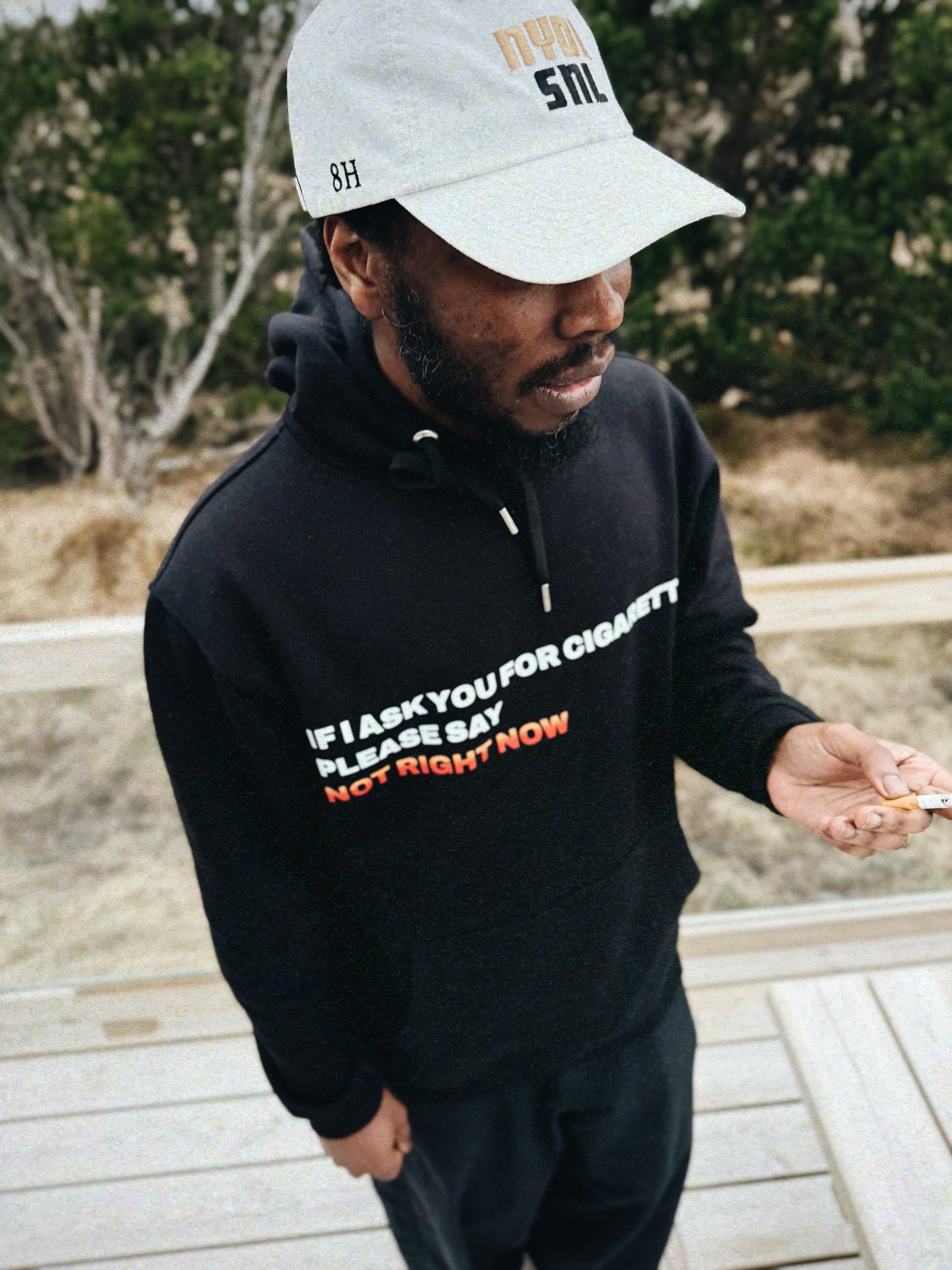 IF I ASK YOU FOR CIGARETTES PLEASE SAY NOT RIGHT NOW